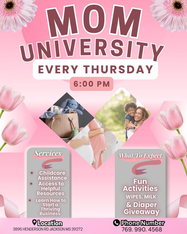 Come out to Mom University on May 15 for free resources, business start-up tips, and a diaper giveaway. Empowerment, support, and sisterhood await you!